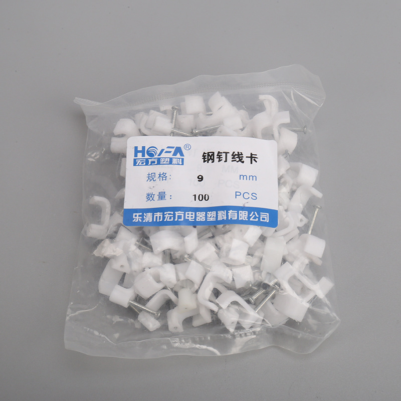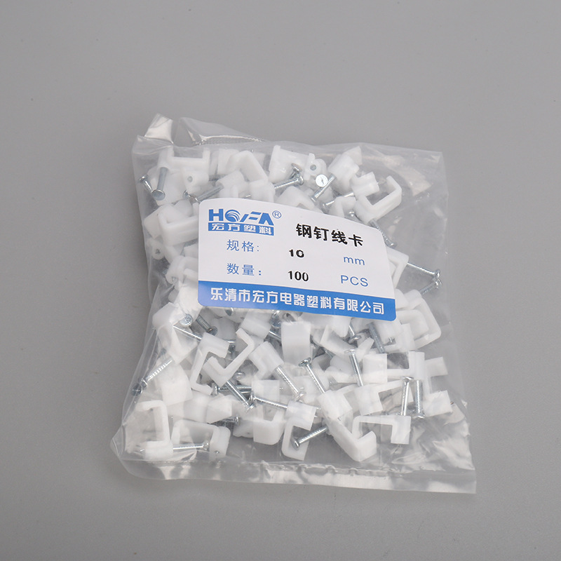 量大从优PE白色料注射成型插钉式线扣钢钉线扣方形扁形钢钉线卡