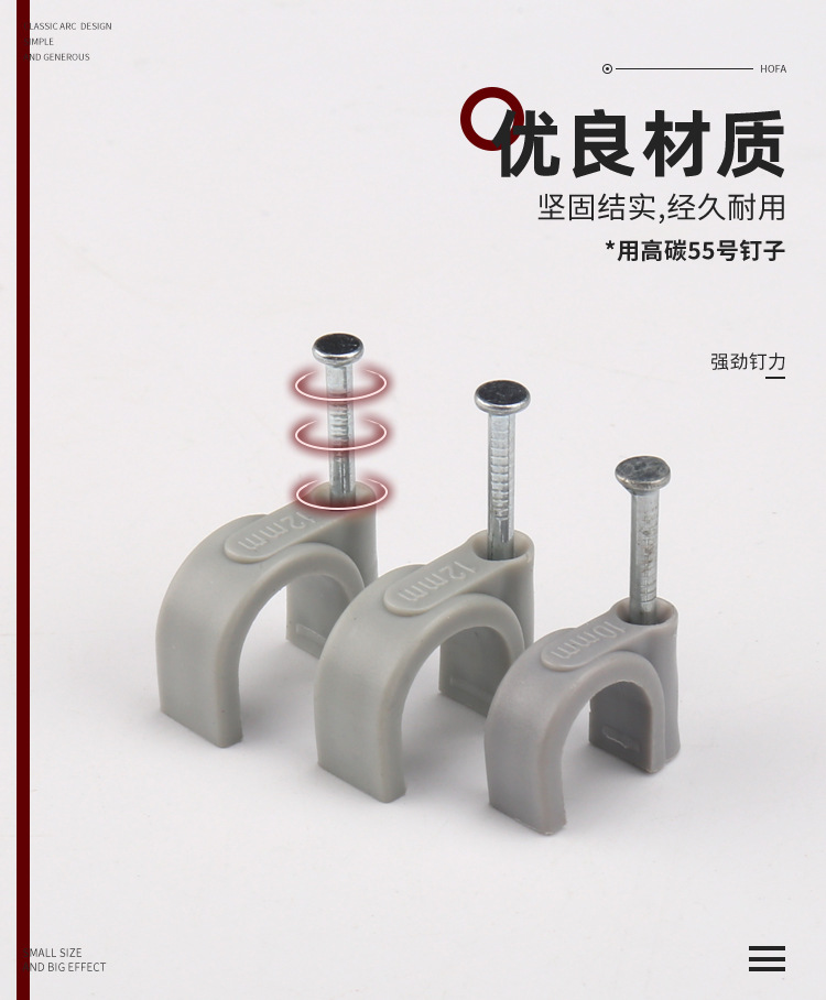 墙钉线钉钢钉线卡 圆型灰色电线卡扣 固定电缆塑料电缆网线线卡