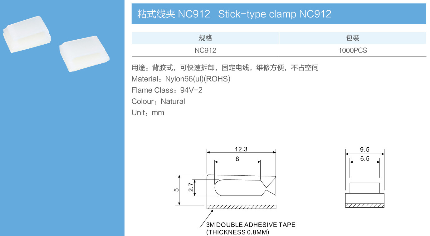 粘式线夹NC1321尼龙线夹固定电缆 固定扣 白色线夹线卡线扣固定夹