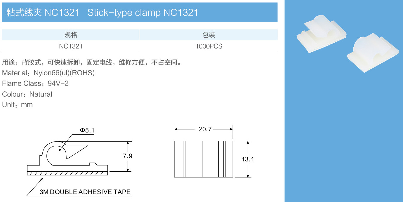 粘式线夹NC912尼龙线夹 白色线夹固定电缆 固定扣线卡线扣固定夹