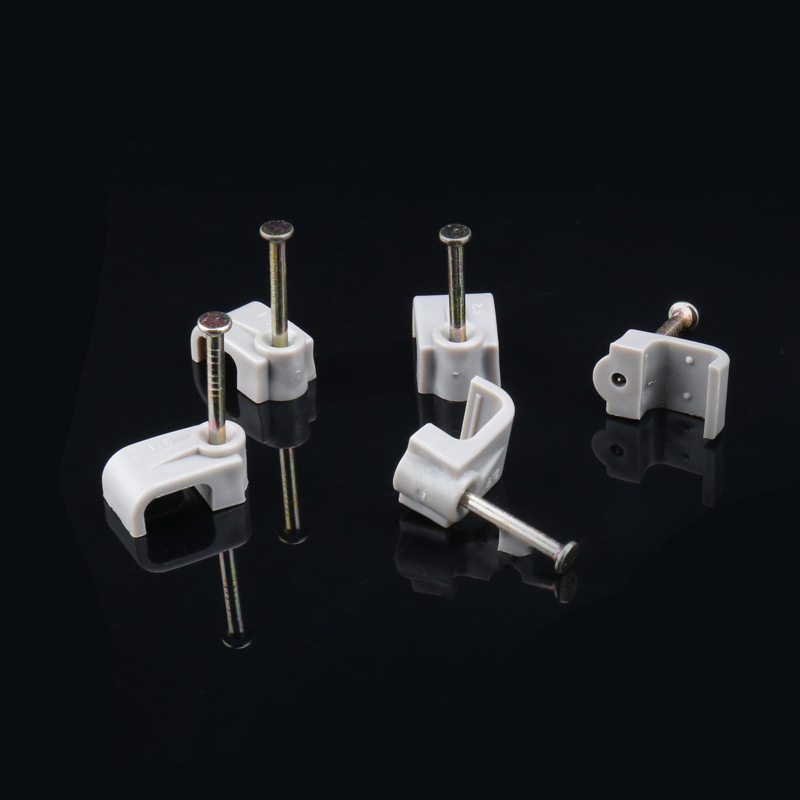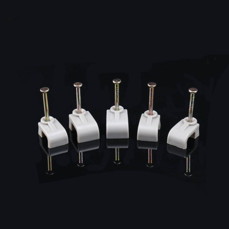 量大从优PE白色料注射成型插钉式线扣钢钉线扣方形扁形钢钉线卡