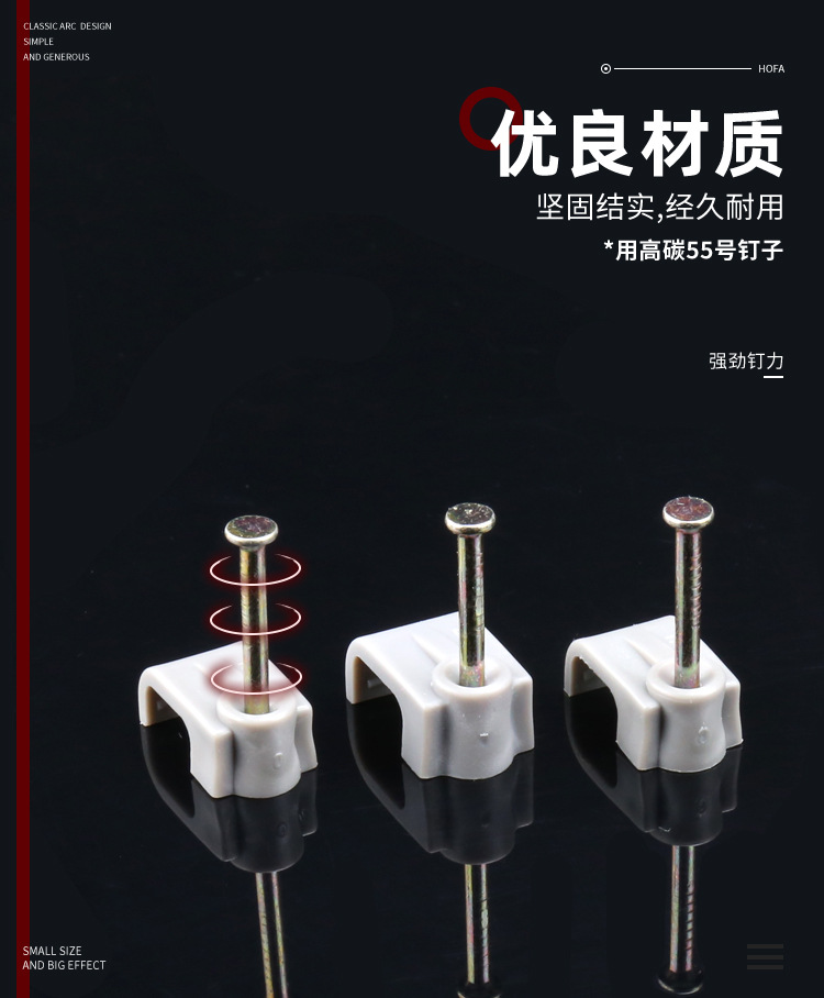 圆形钢钉线卡PE白色灰色