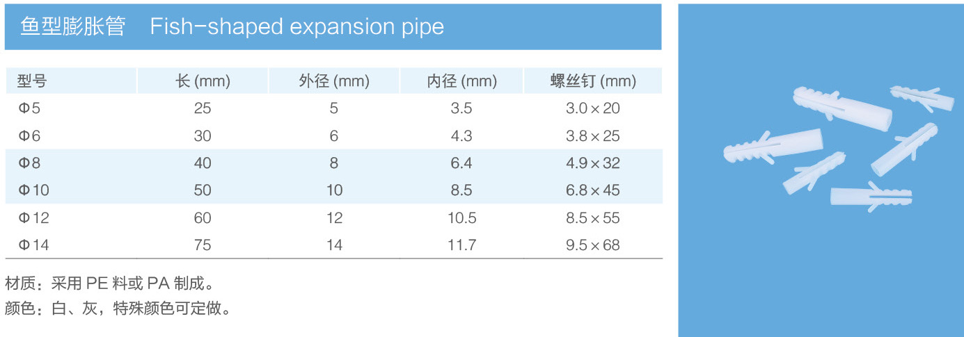 厂家供应鱼尾膨胀管PE 白色塑料膨胀管 鱼尾形条形膨胀管φ5-φ12