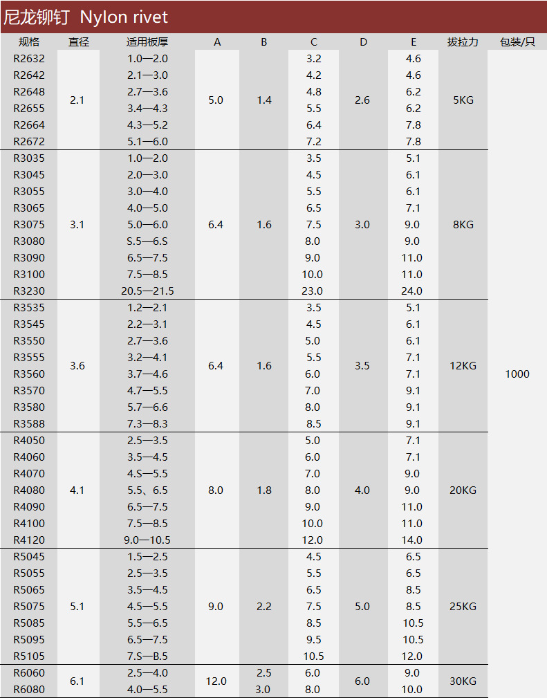 上一篇:白色尼龙铆钉高品质 紧固件连接件R系列 尼龙紧固件圆头铆钉