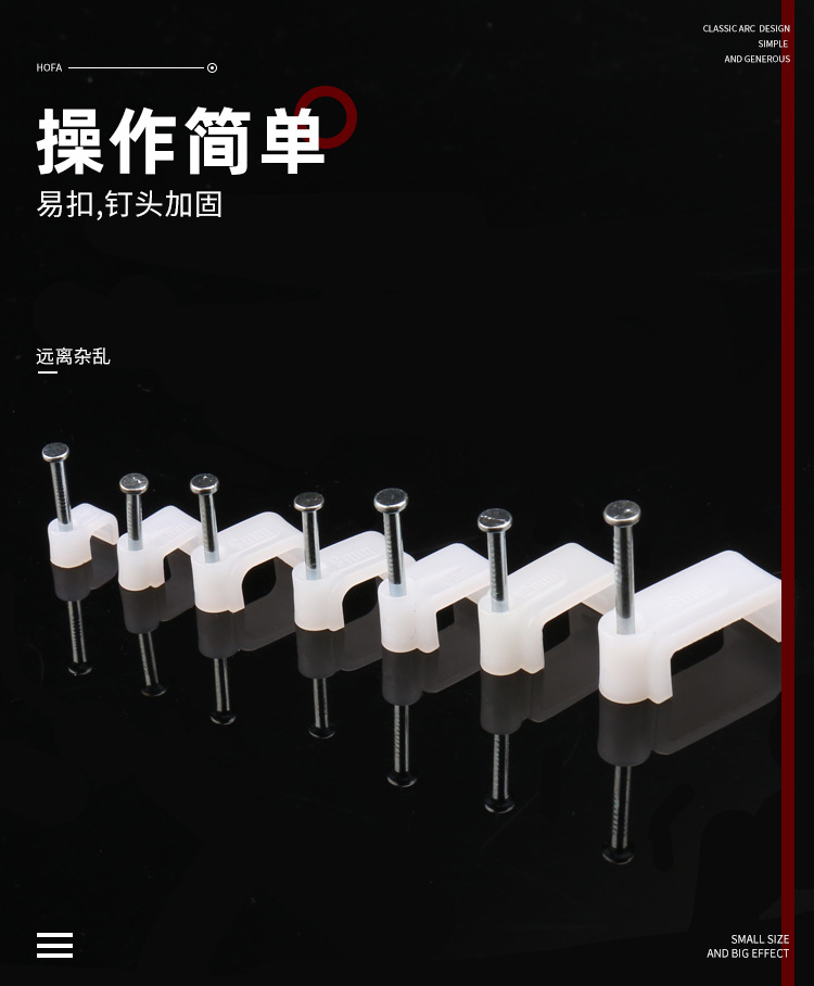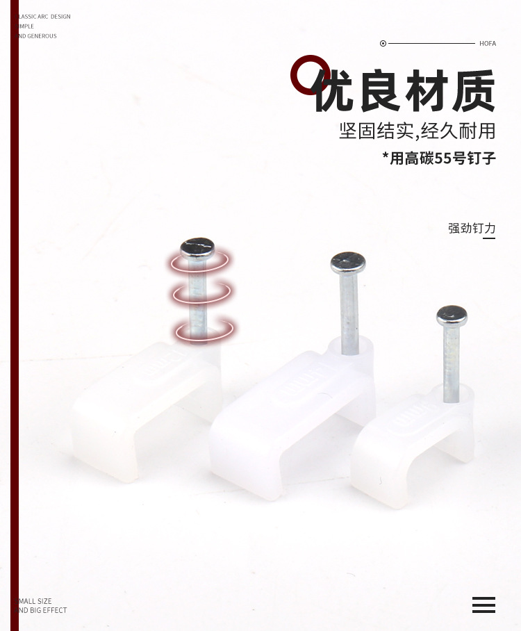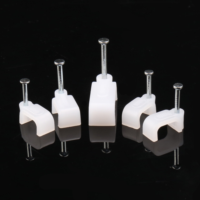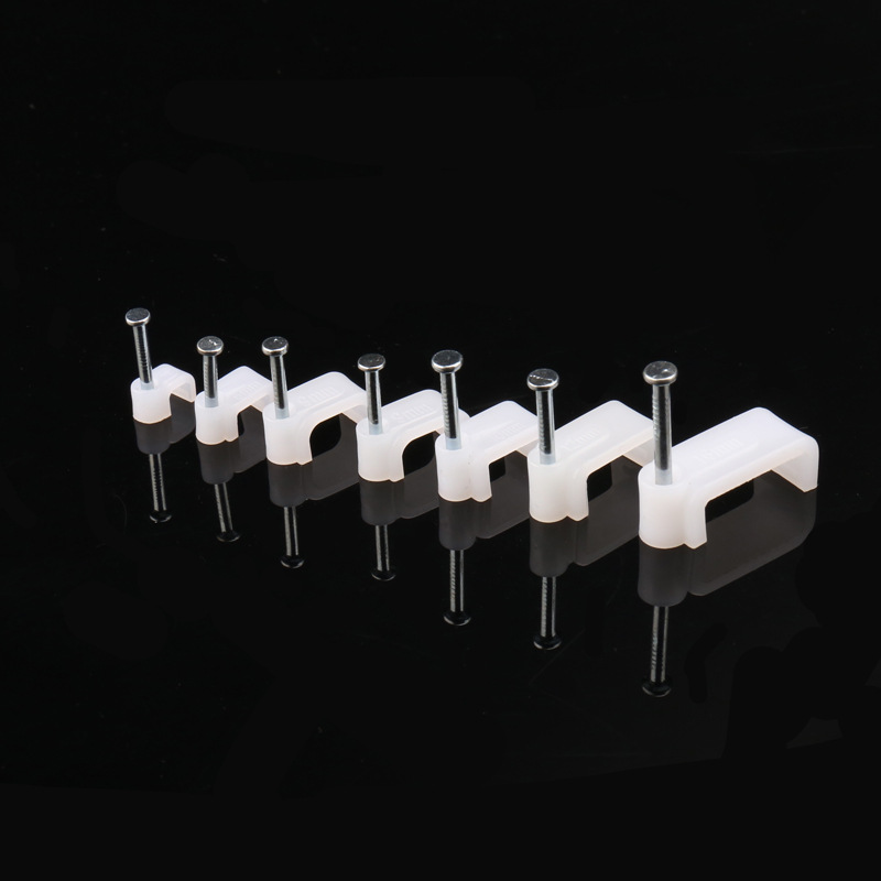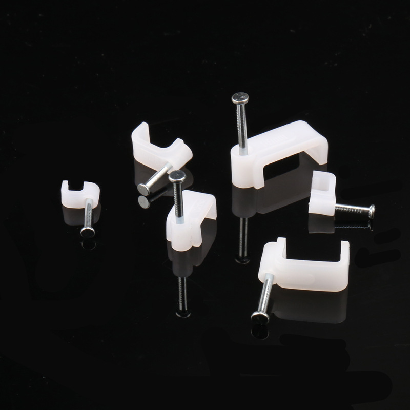 量大从优PE白色料注射成型插钉式线扣钢钉线扣方形扁形钢钉线卡